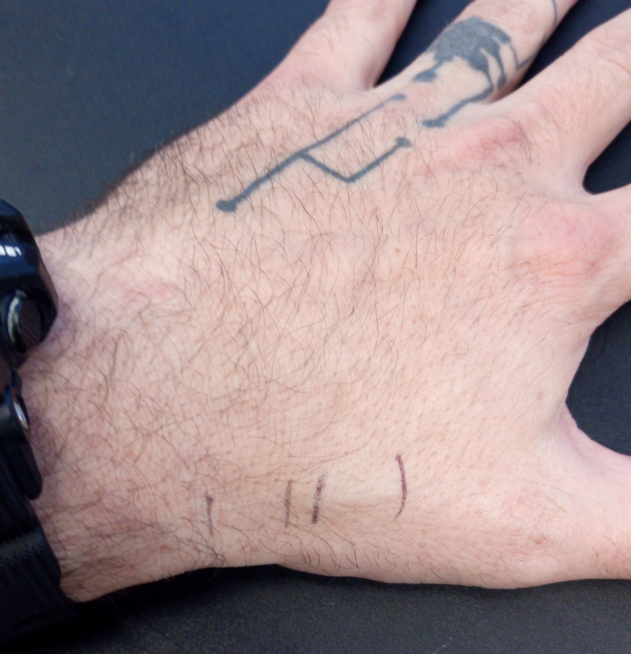 It’s also been jumping metacarpals. I actually like where it is better now between the 3rd and 4th than when it was between the 4th and 5th. For a while it was right on top of the 4th.